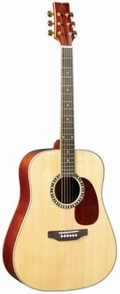 Amazing looks and sound is what you get with the JB85S. Features solid spruce top, mahogany back and sides, and a rosewood fingerboard. Body, fingerboard and headstock are all capped off with attractive maple binding. Gold diecast machines, tortoise shell pickguard, and a natural gloss finish round out this instrument.